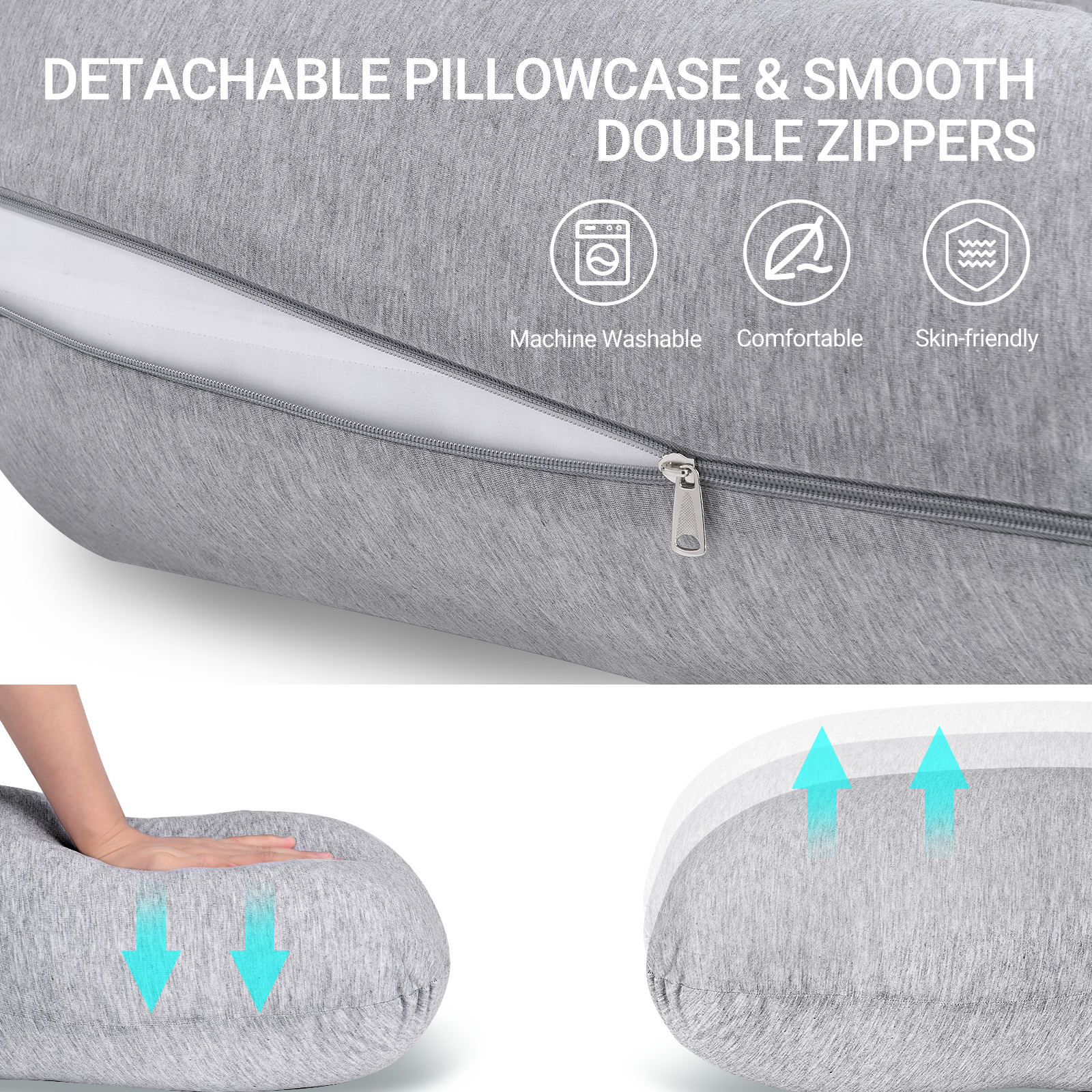 Momcozy Maternity Accessory J Shaped Maternity Body Pillow Grey